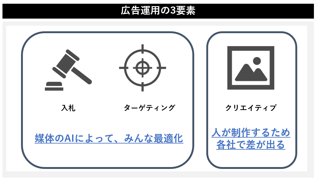 そこで、何で他社よりも高いパフォーマンスを出すのかとなると、「クリエイティブ」のパフォーマンスを高めるしかないのです。