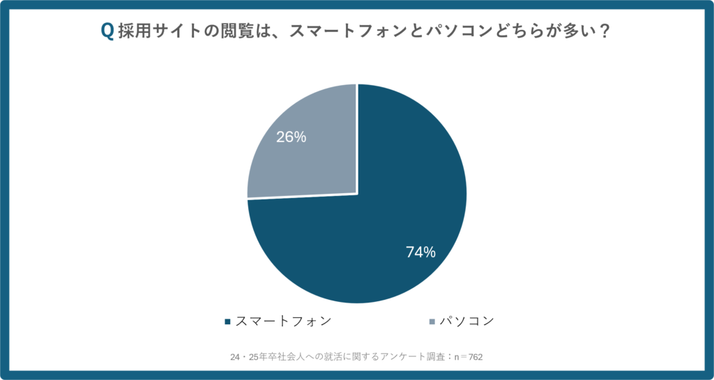 約75%の就活生が採用サイトの閲覧は主にスマートフォンを使用