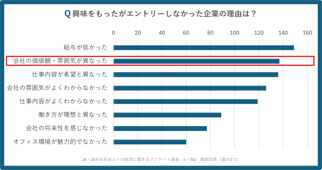 会社の雰囲気は、就活生がエントリーをやめる理由としても重視されている